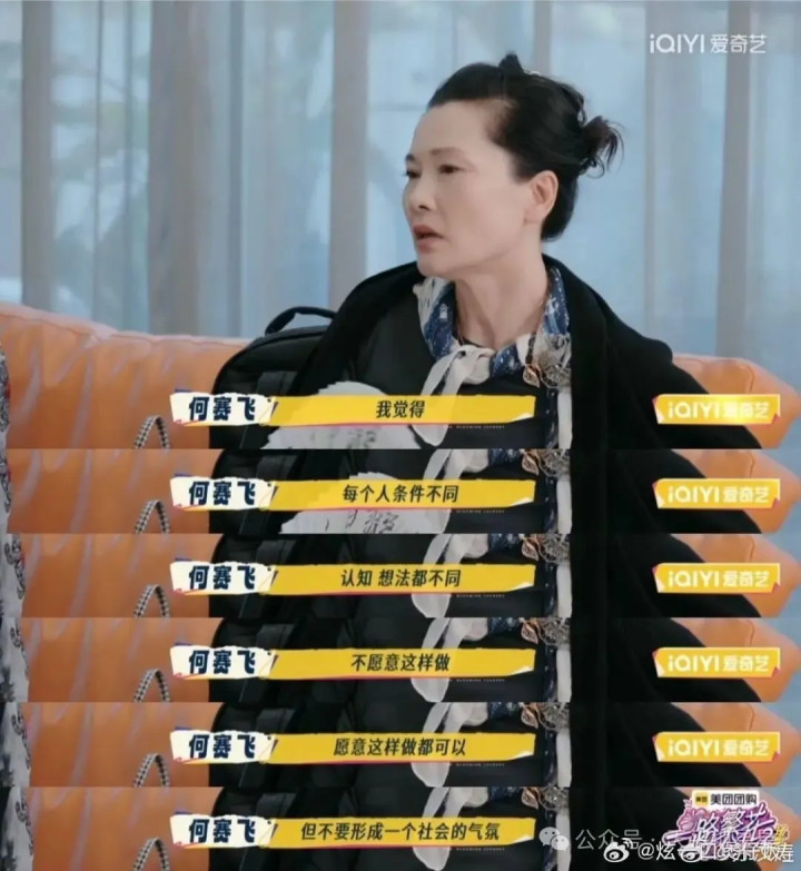 而且,何赛飞真的是谁也不惯着,只要是你说的和她不一样,或者她觉得不爽的,她都要当场指出来,主打的就是一个坚决不内耗自己。