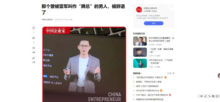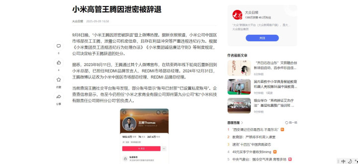 2025年9月8日晚,小米公司发布的一则人事变动的消息,让王腾在小米的职业生涯戛然而止。