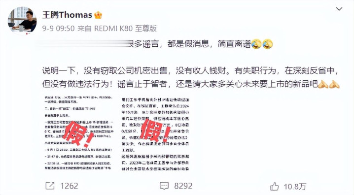 不过,对于王腾的辞退原因,小米的通告中已作出回应,而且王腾自己也在平台上发出了解释。